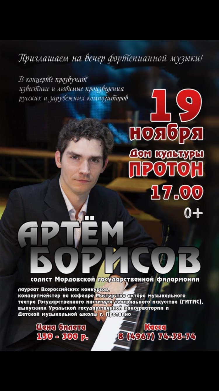Борисов Артем — выпускник Уральской государственной консерватории им. М.П. Мусоргского класс Народной артистки России Натальи Георгиевны Панковой, Выпускник Протвинской музыкальной школы Лауреат Всероссийских конкурсов. Солист Мордовской филармонии